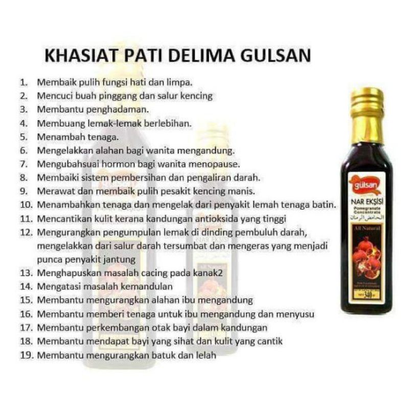 . Buy 5 items rm1450. Aku hanya makan supplement yang dibekalkan oleh Klinik Kesihatan dan amalkan pati delima. InsyaAllah Khasiat dan fungsi Pati Delima Gulsan.
